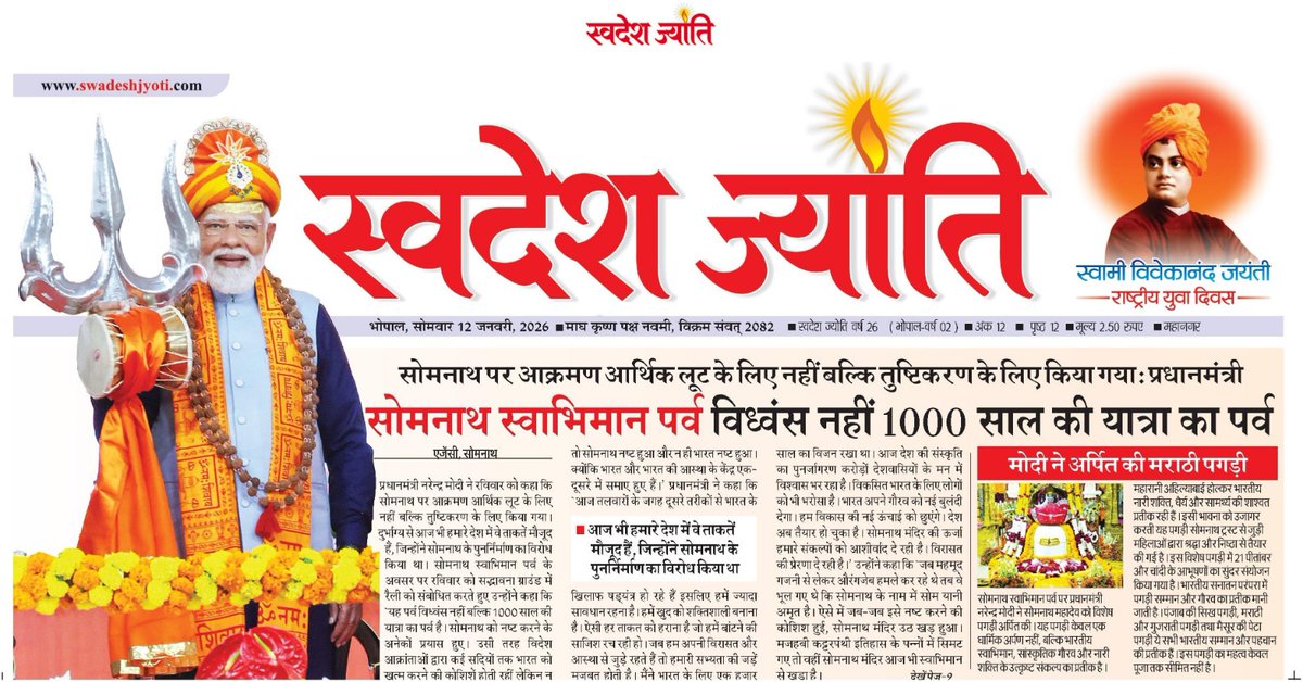 प्रधानमंत्री नरेंद्र मोदी ने कहा कि सोमनाथ पर आक्रमण आर्थिक लूट के लिए नहीं बल्कि तुष्टिकरण के लिए किया गया था। यह पर्व विध्वंस का नहीं, भारत की 1000 वर्ष की अविश्वसनीय यात्रा का प्रतीक है।